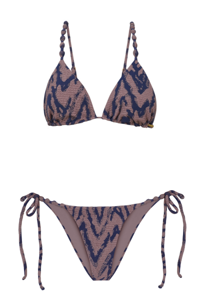 Bottom básico de amarrar con delicada manualidad y bordado en costados. Hecho en tela suave y texturizada. Composición de la tela: 65% Poliamida 25% Poliéster 10% Elastano.