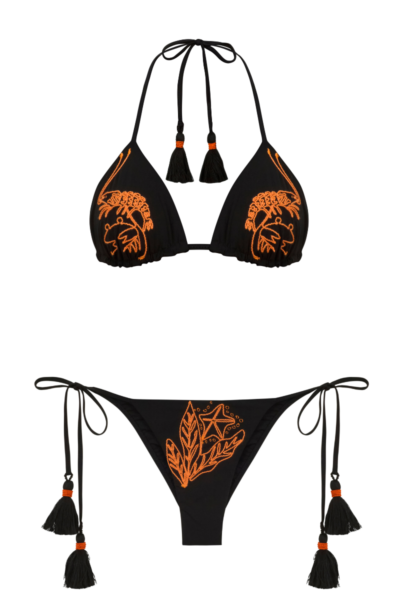 Nuestro Talia bottom es un básico de amarrar con corte moderado hecho en tela suave y cómoda. Tiene unos pompones tejidos en las tiras de ajuste. Incluye bordado en pieza delantera. Composición de la tela: 79% Poliamida 21% Elastano.