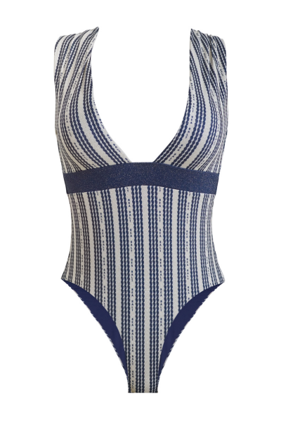 Nuestro enterizo Delyth tiene una silueta de escote profundo en delantero y posterior, con recogido en las cargaderas y una banda en cintura para amarrar en la espalda para el mejor ajuste. Tiene copas removibles. 47% Poliéster 37% Lurex 16% Elastano.