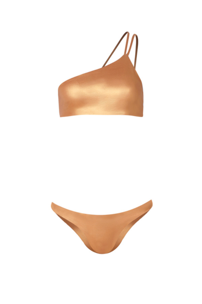 Top asimétrico de un solo hombro en tela brillante que se amarra en la espalda. Se ajusta para mayor comodidad y tiene copas removibles. Composición: Poliéster 81% y Elastano 19%. Cuidados de la prenda: Para lavar la temperatura máxima recomendada es de 40°C, lavar a mano, no usar ni lavadora ni secadora, no planchar ni lavar en seco, no utilizar blanqueador, no escurrir, no retorcer ni frotar.