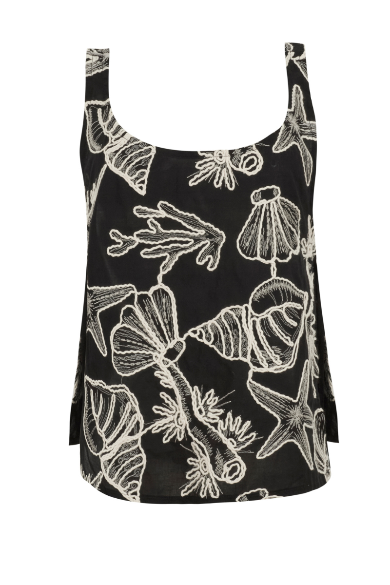 Nuestra blusa Maddison tiene cuello redondo y se puede anudar a los lados. Puedes anudarlos como prefieras. La tela está bordada. Composición de la tela: 100% Algodón