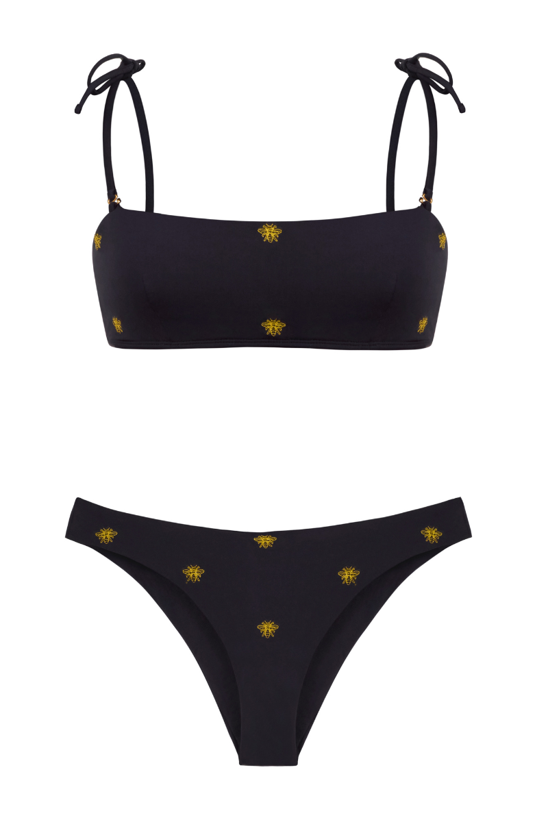 Nuestro top Nina es un top clásico tipo bandeau hecho con tela suave. Tiene un delicado bordado en la pieza delantera. Tiene estructura interna con varilla y cargaderas removibes. Composición de la tela: 86% Poliamida 14% Elastano.
